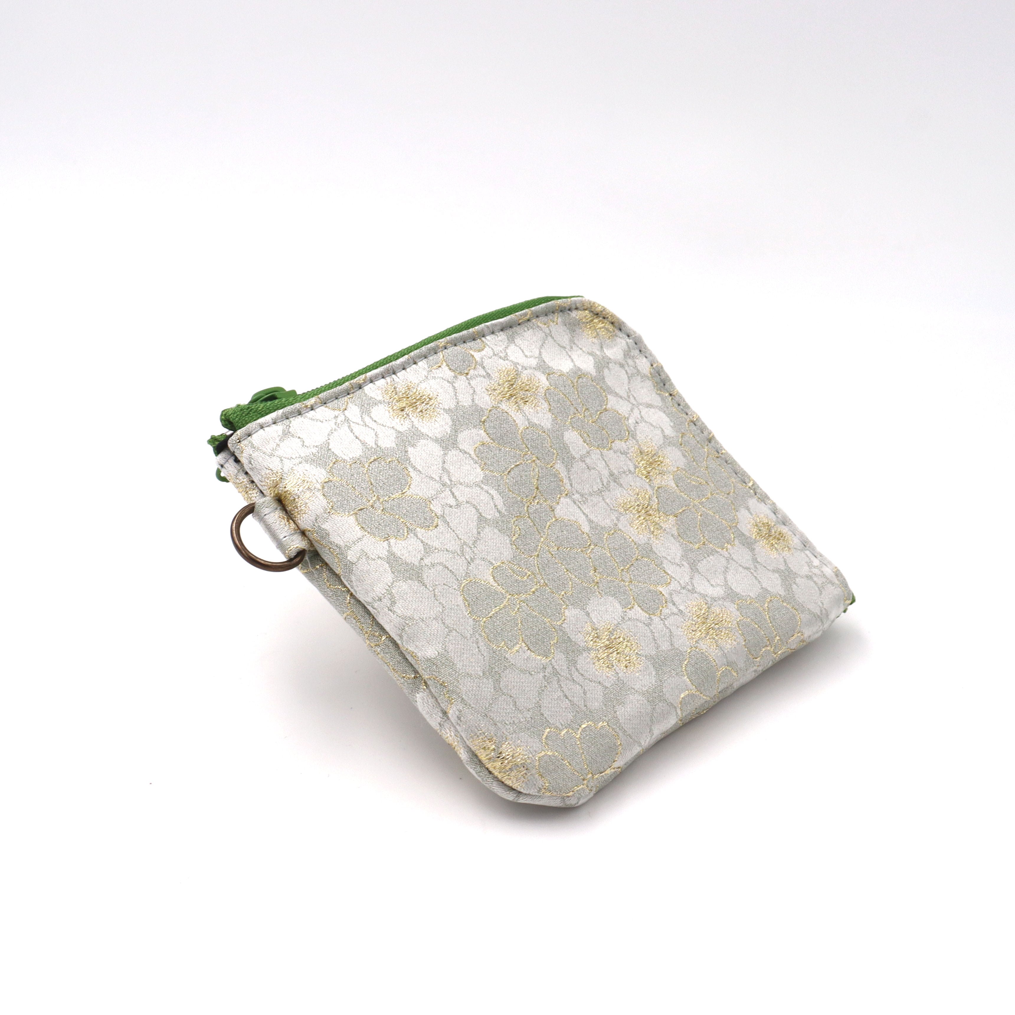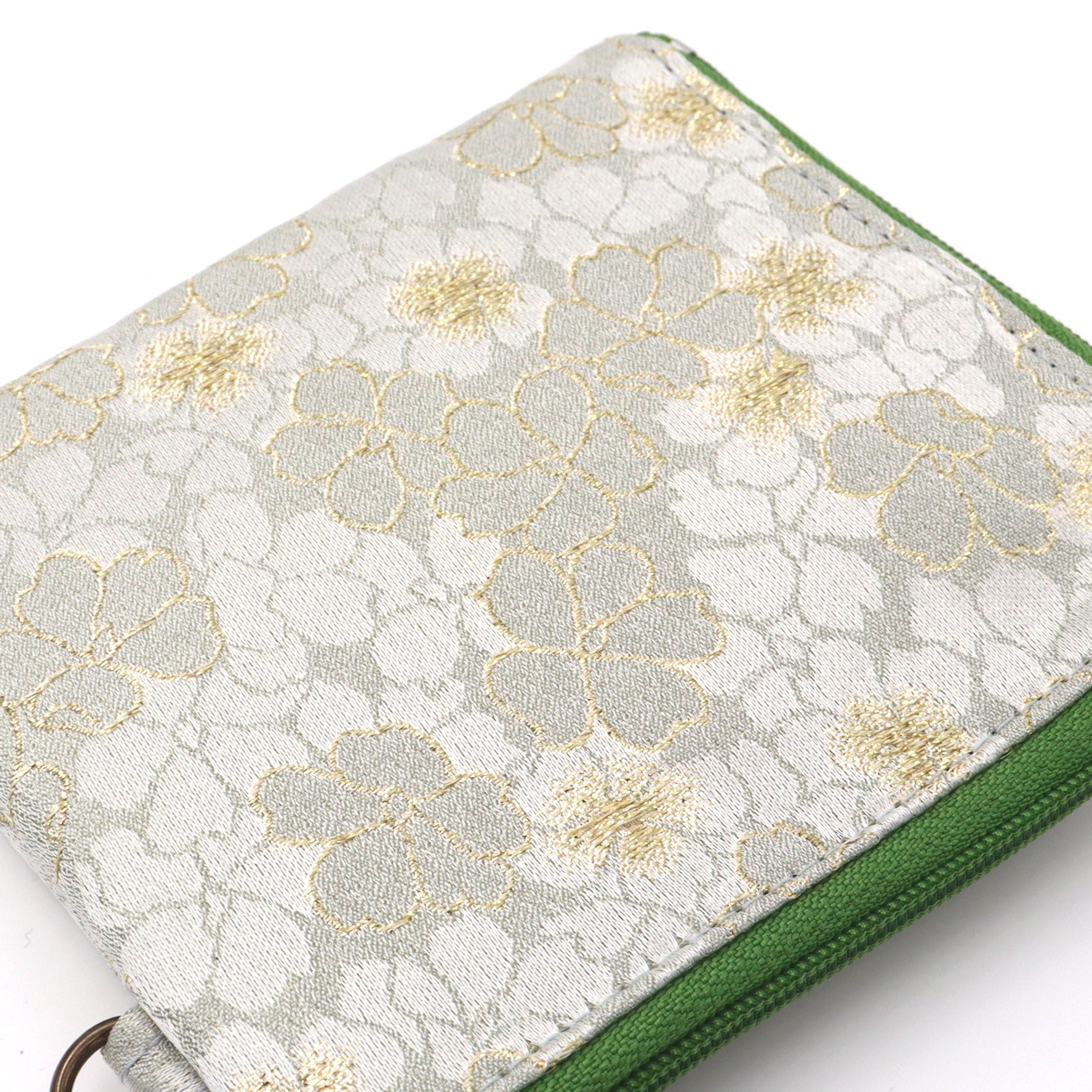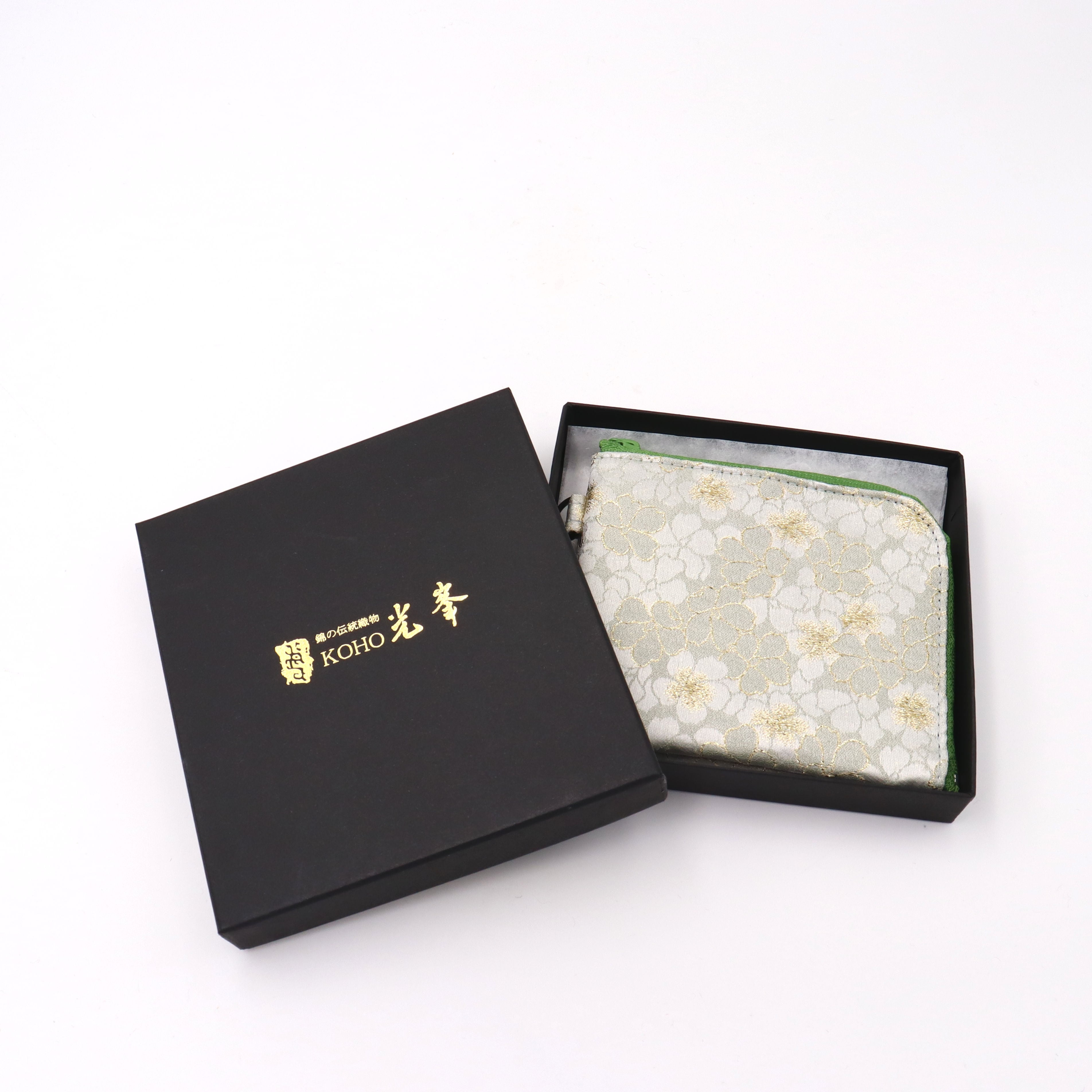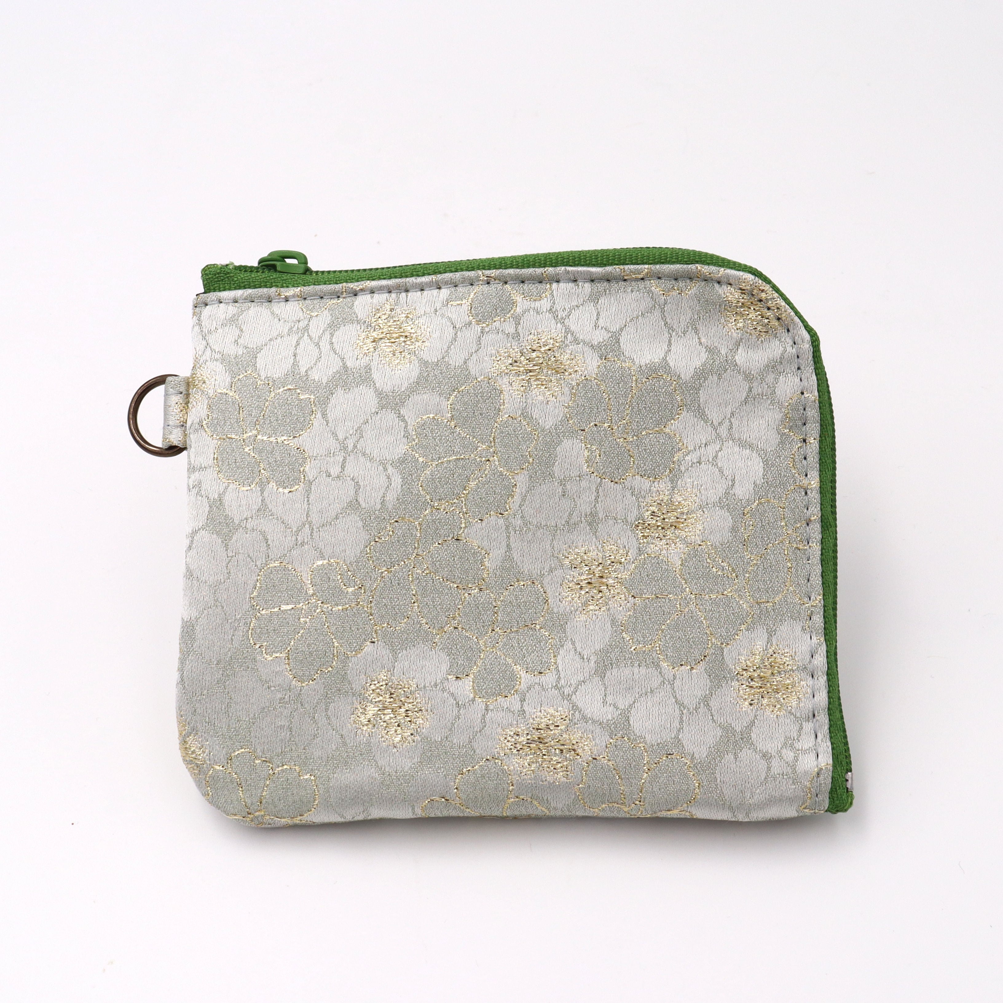 コンパクトL字財布 夾竹桃花文緞子 花の柄 グレー