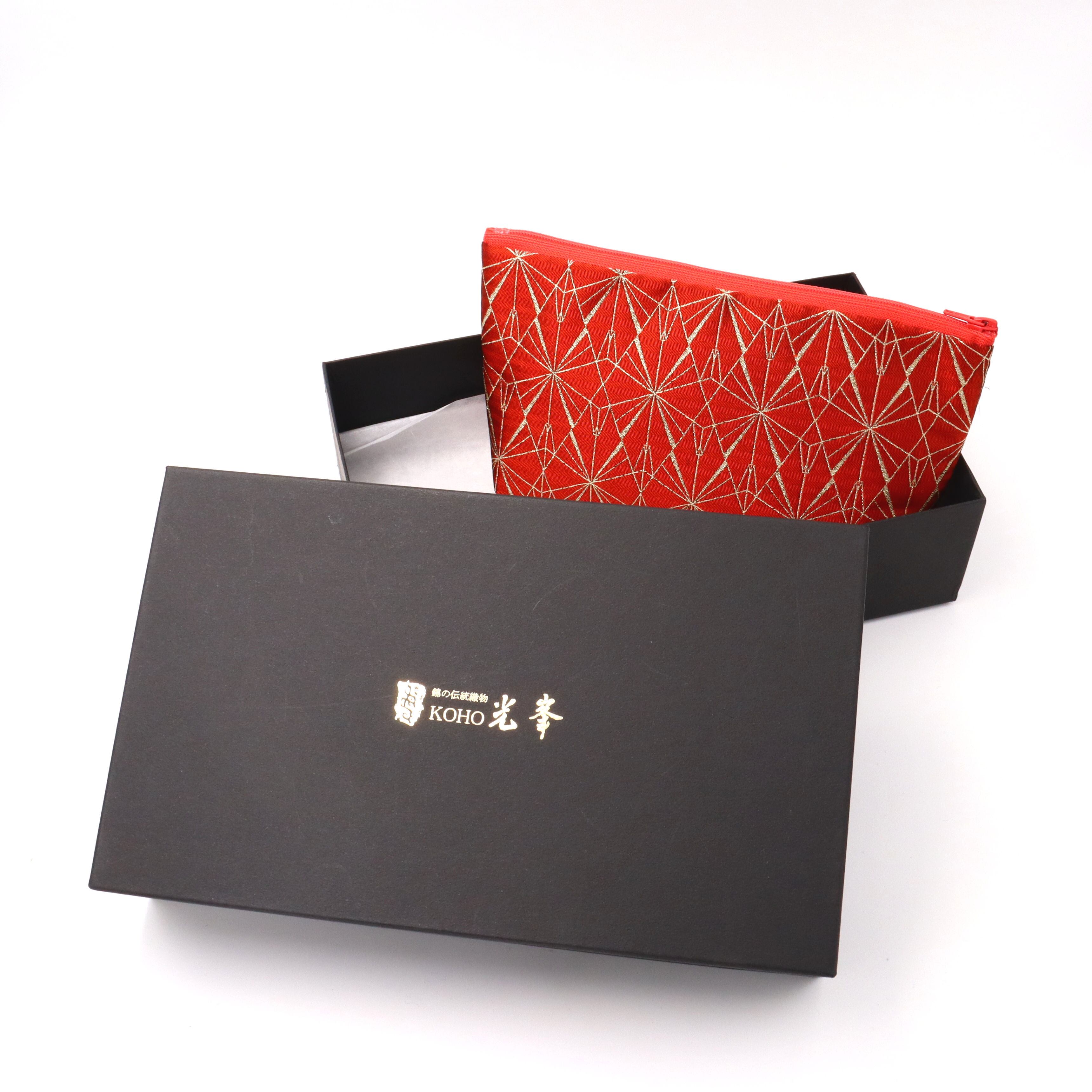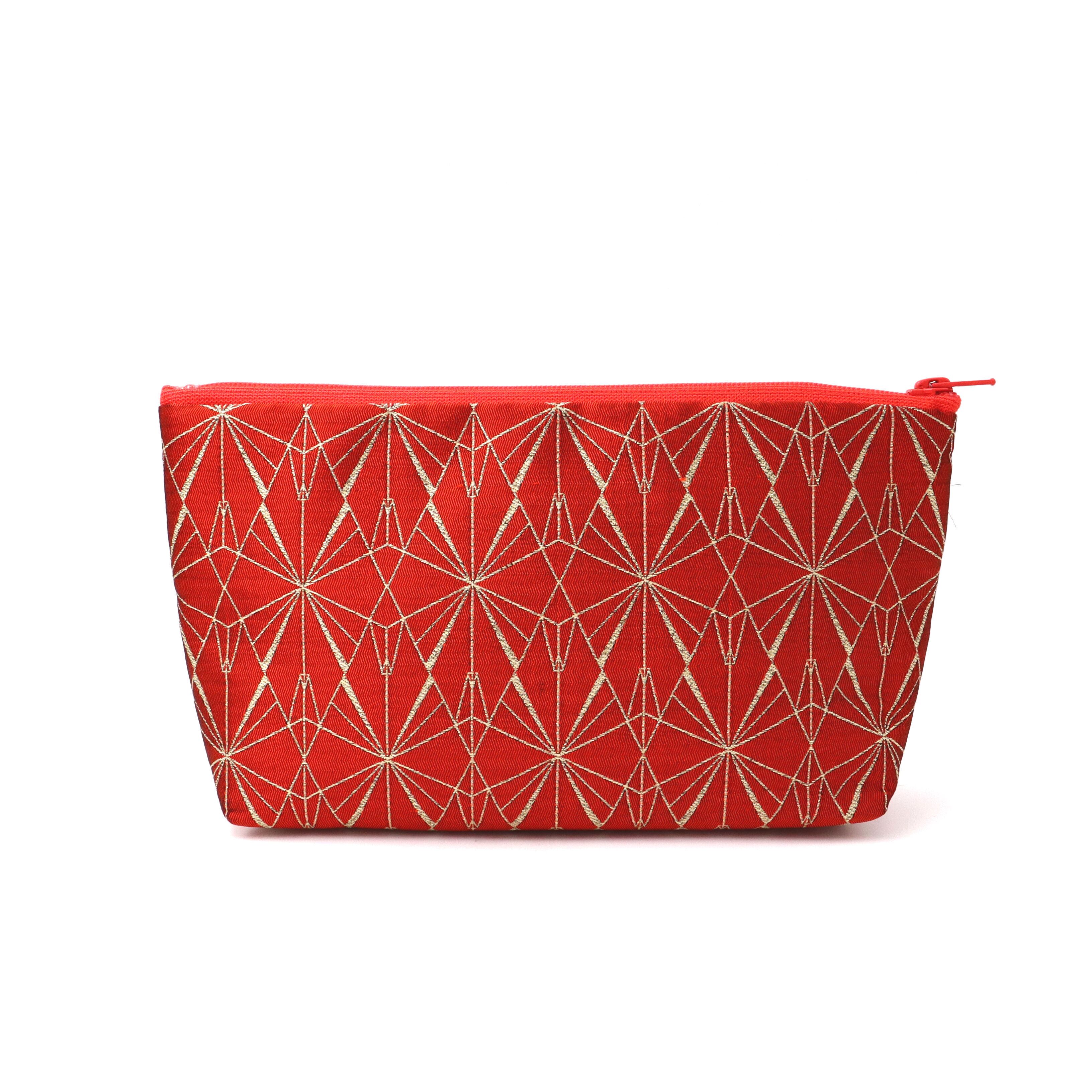 ポーチ マチ付き 日本の紋様を楽しむ 鶴の柄 折り鶴 エンジ