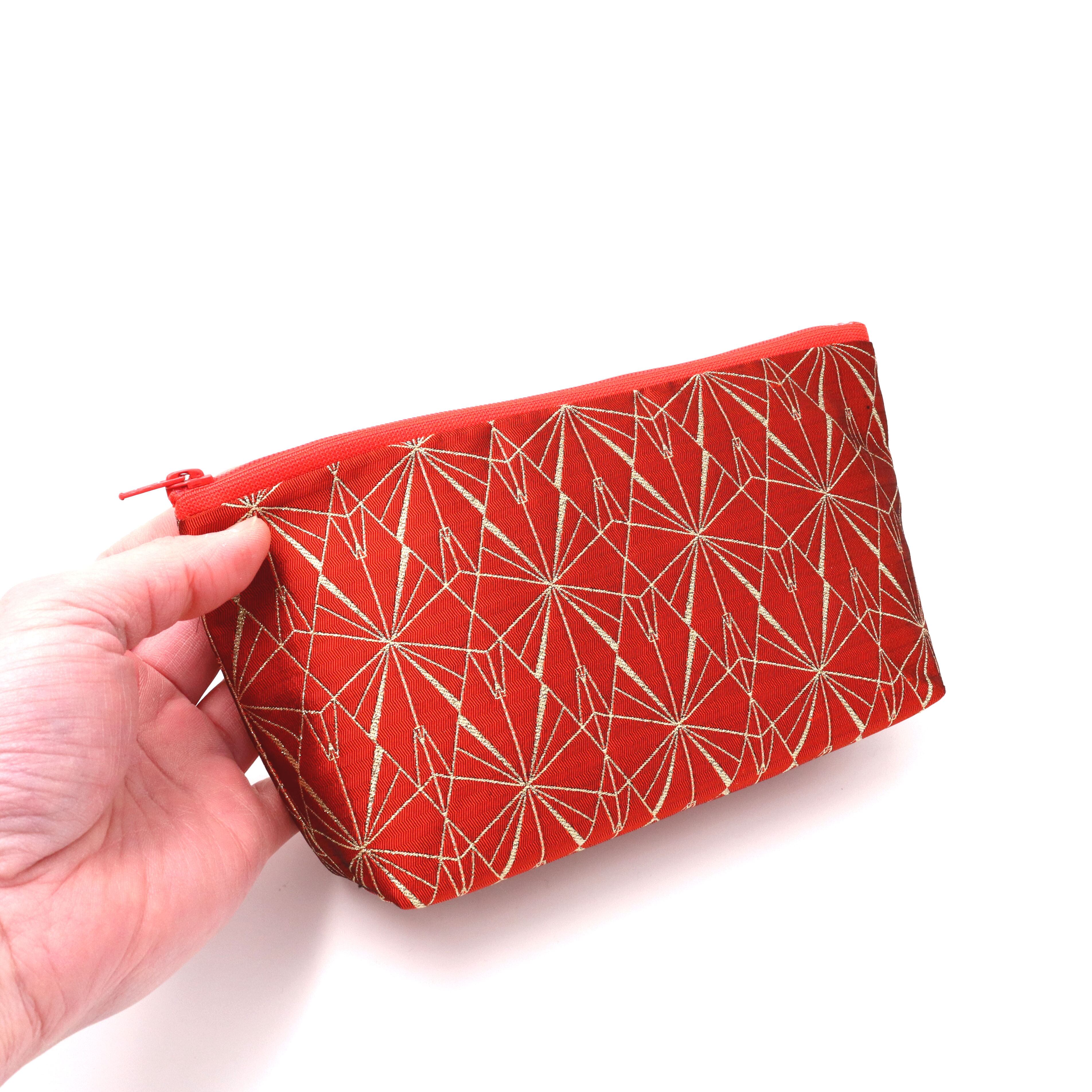錦織で仕立てたポーチ(マチ付き)。