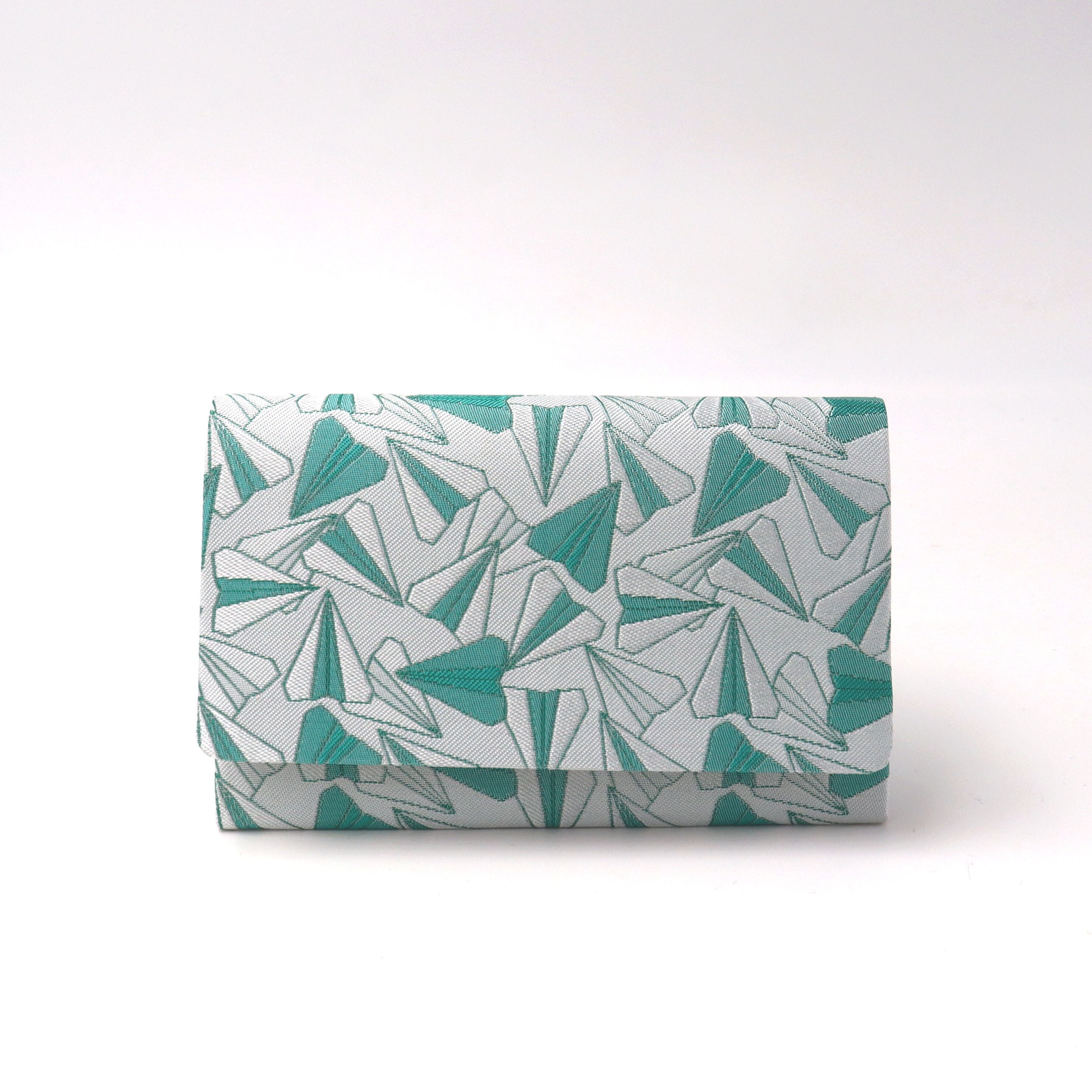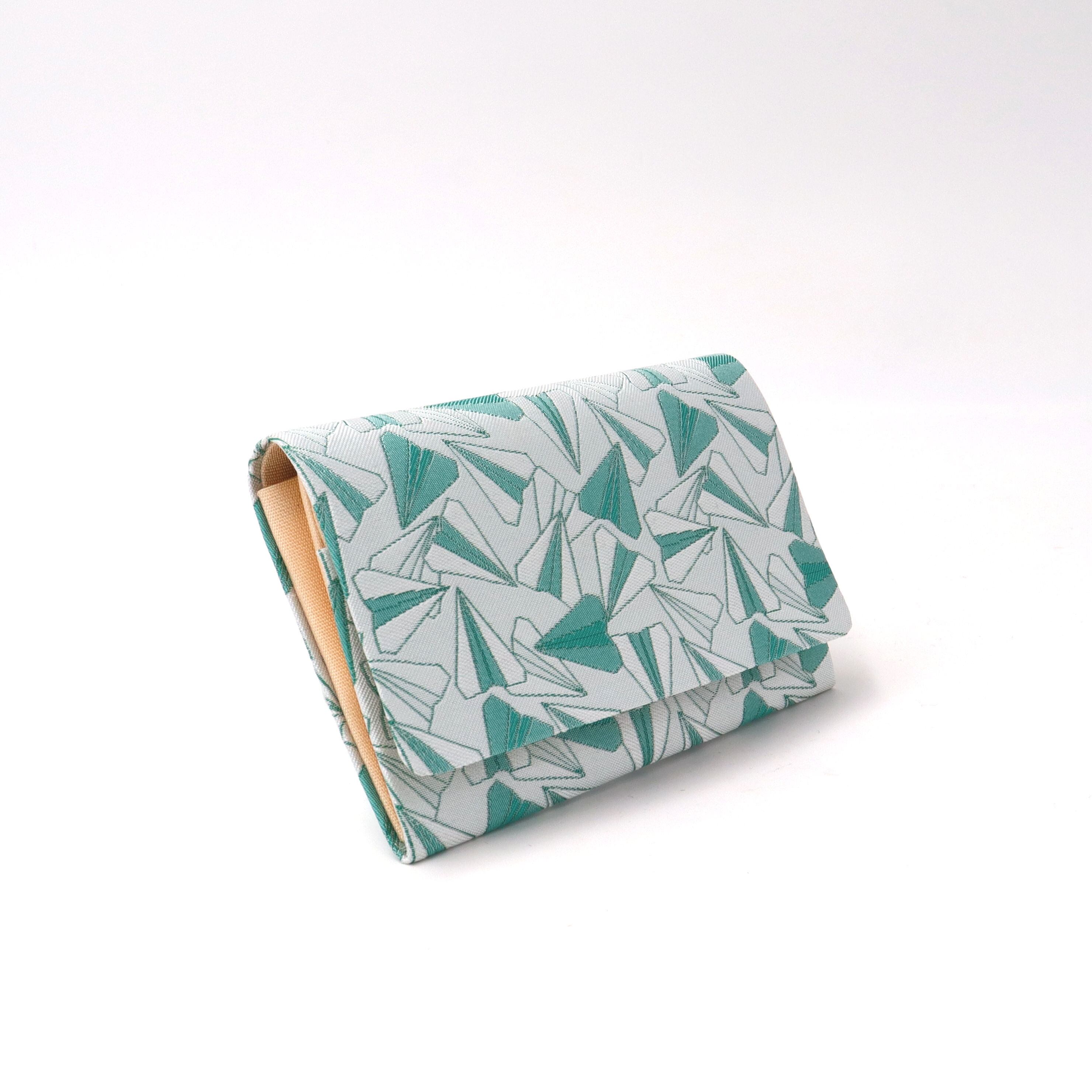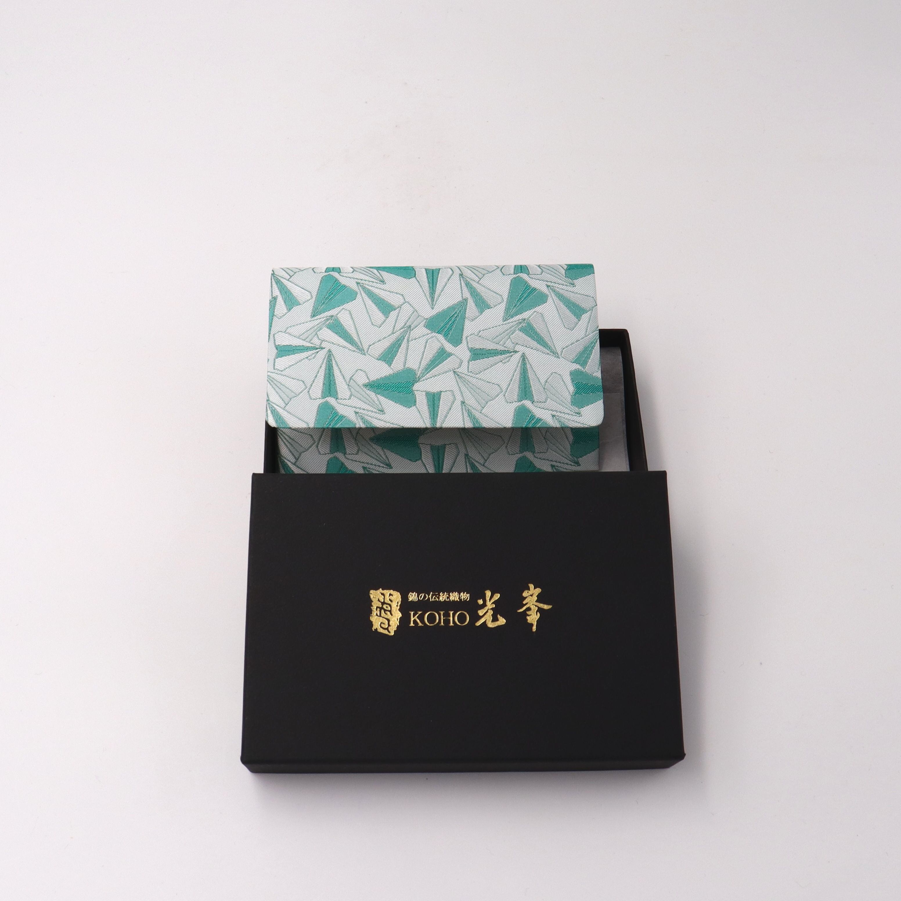名刺入れ 紙ひこう機錦 紙飛行機の柄 紋様を楽しむ 折り紙 グリーン