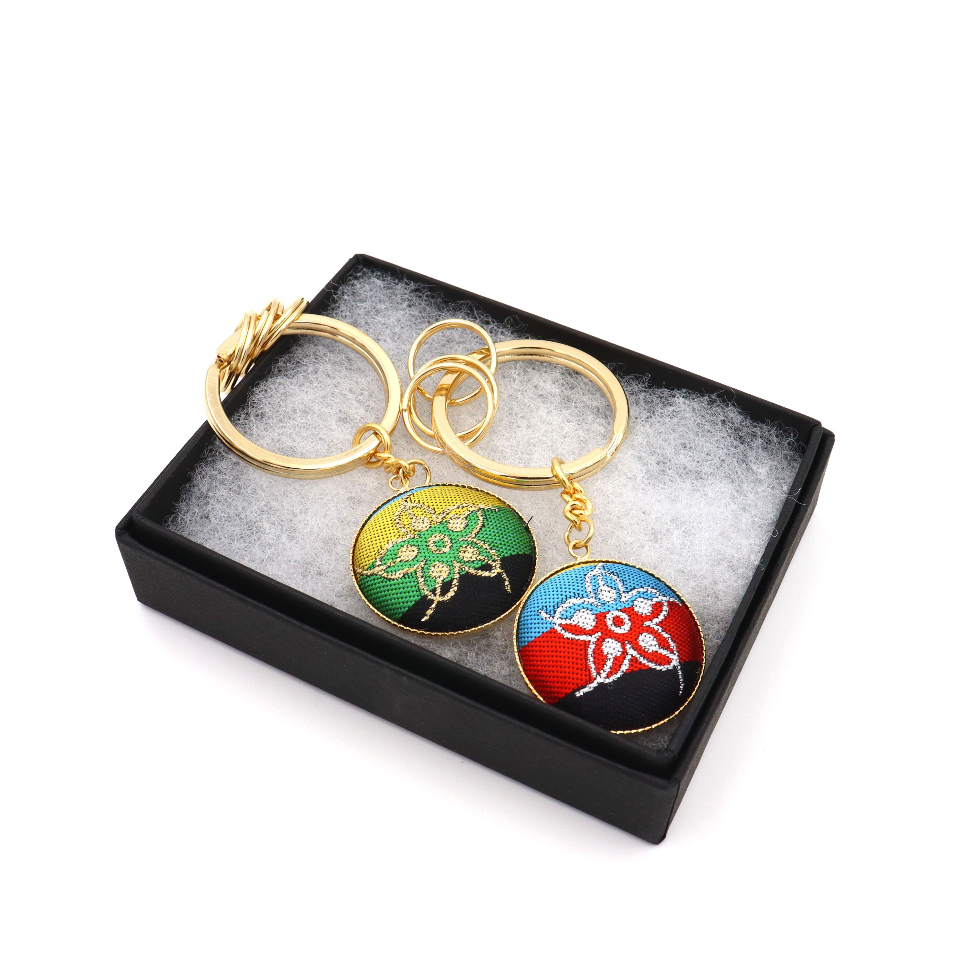 「世界で最も美しい織物」といわれる錦織で仕立てたキーホルダー。