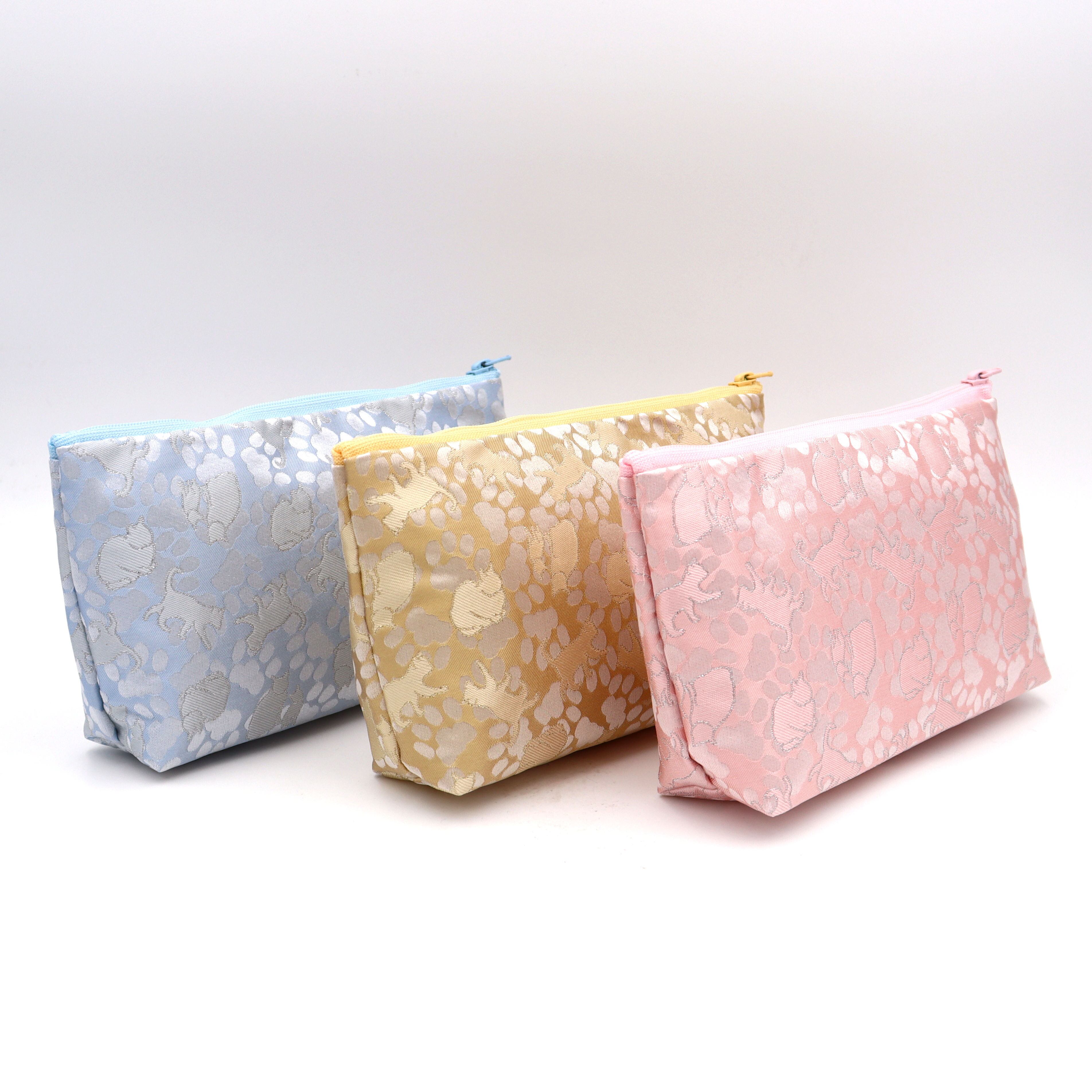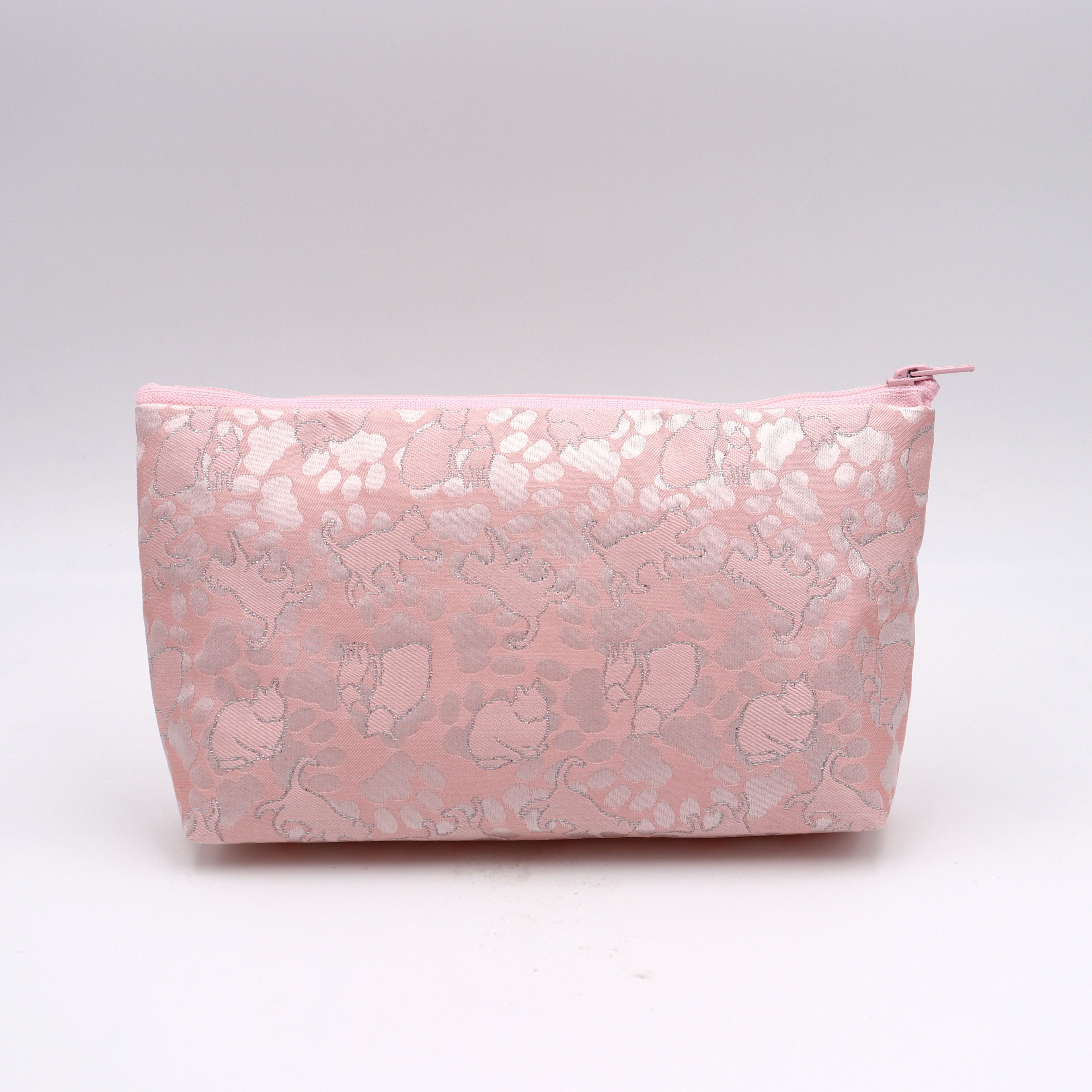 可愛らしい猫の紋様が描かれたポーチです。使いやすいマチ付きで、小物や化粧品など様々なアイテムの収納に最適です。猫好きな方には特におすすめの商品です。